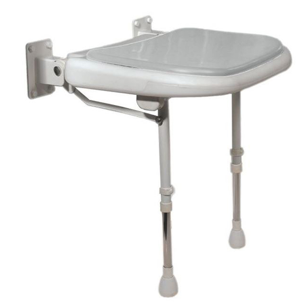 The AKW deluxe wide padded, fold up, wide shower seat offers comfort and security in a wider profile. The rustproof, durable aluminum frame features two well-braced aluminum legs, molded polyethylene seat bottom keeps the seat clean and mold free. The height adjustable legs allow for customizable adjustments and cleverly compensates for floor slope. These deluxe seats boast a 560 lb load capacity for a seated user and are ADA compliant.